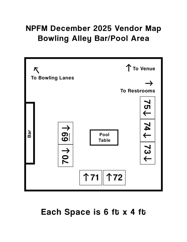 Below you will select the space in which you will be vending on Saturday, December 6th and Sunday, December 7th at Eastside Bowl.